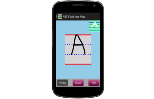 ABC FourLines Note App is for the kindergarden kids to practice writing alphabets and numbers whithin their set limits for improving on their handwriting.